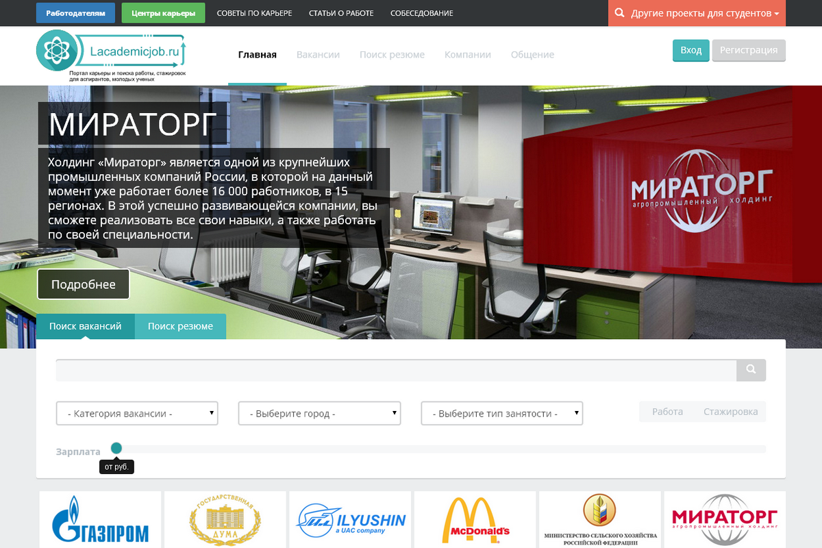 Масштаб деятельности работодателей, размещающих вакансии на наших сайтах, дает широкие возможности карьерного роста и самореализации.