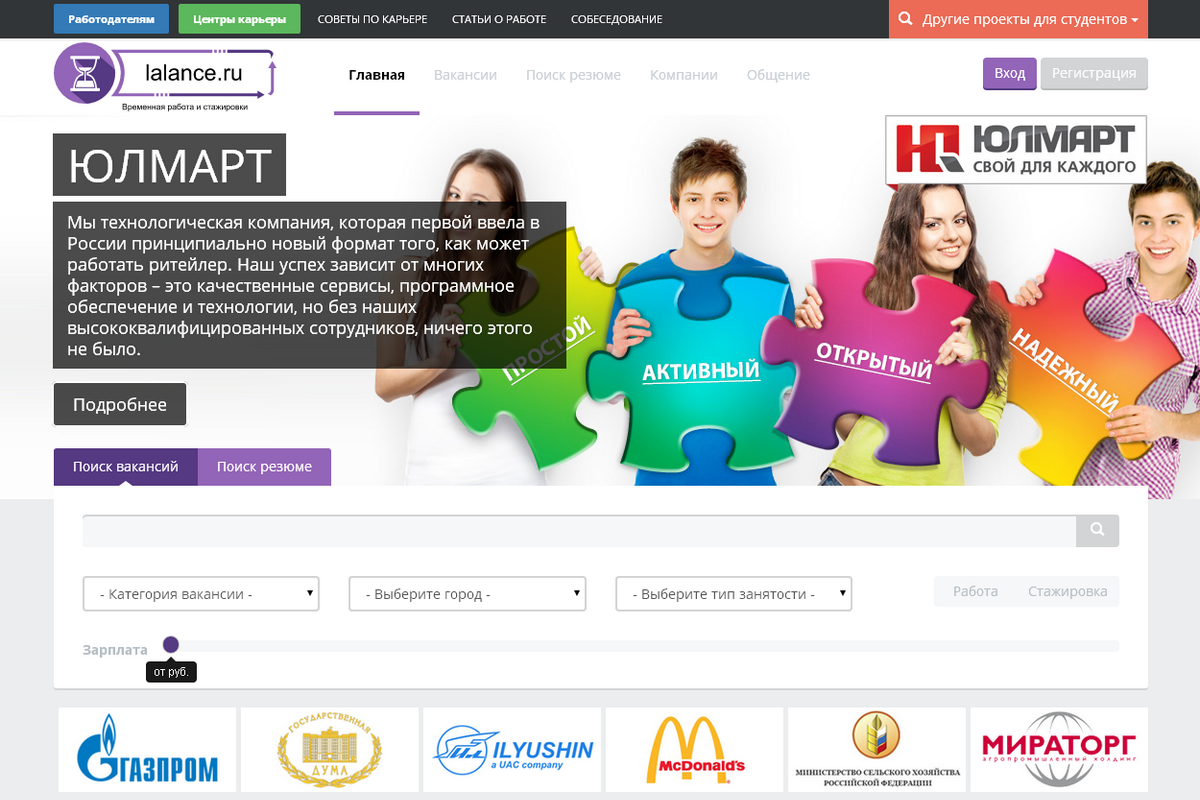 Многим работодателям нужен именно такой сотрудник как ты. Наши площадки – это ваше место встречи с ними.
